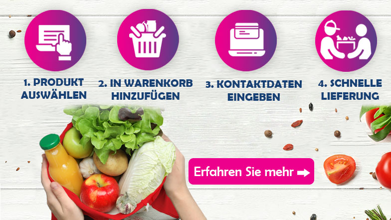 Wir liefern frische Produkte nach Ihren Wünschen zu Ihnen nach Hause